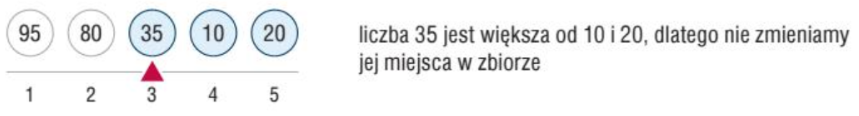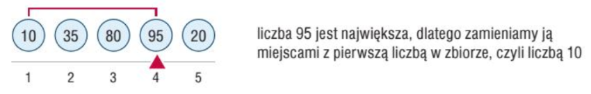 2. Przykład porządkowania liczb metodą przez wybieranie – od największego do najmniejszego