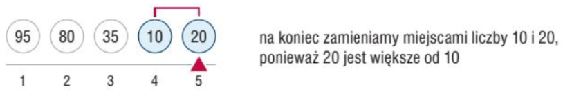 Teraz pomijasz pierwszą liczbę (już jest na dobrym miejscu).
